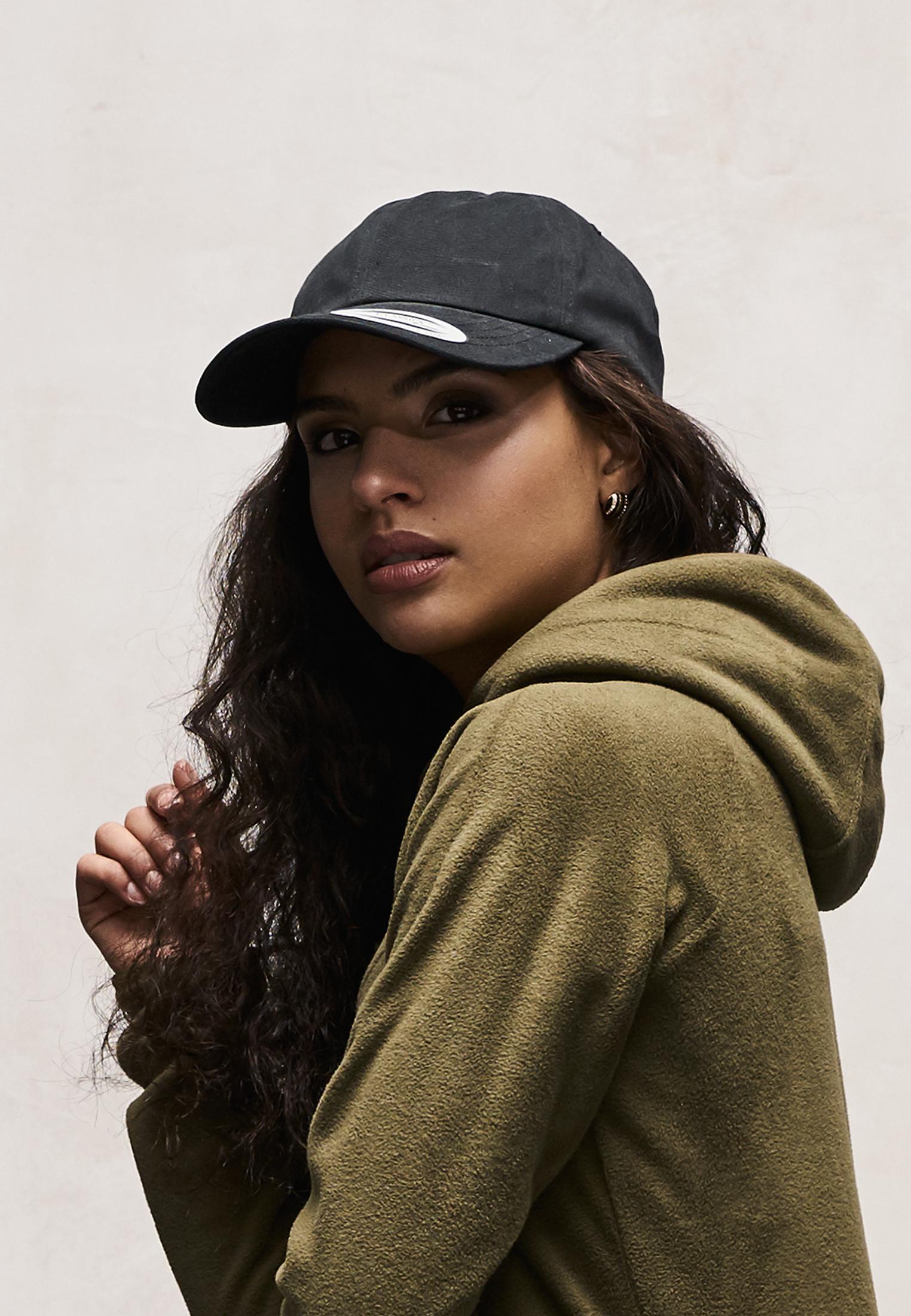 Podwójna wygoda: biel nadaje zewnętrznej tkaninie czapki Peached Cotton Twill Dad Cap przyjemny, niemal filcowy charakter. Klasyczny kształt z nieustrukturyzowanym przodem, zakrzywionym rondem i zapięciem na pasek jest bardzo wygodny i sprawi, że stylowa czapka Dad Cap stanie się Twoim nowym ulubionym elementem garderoby.