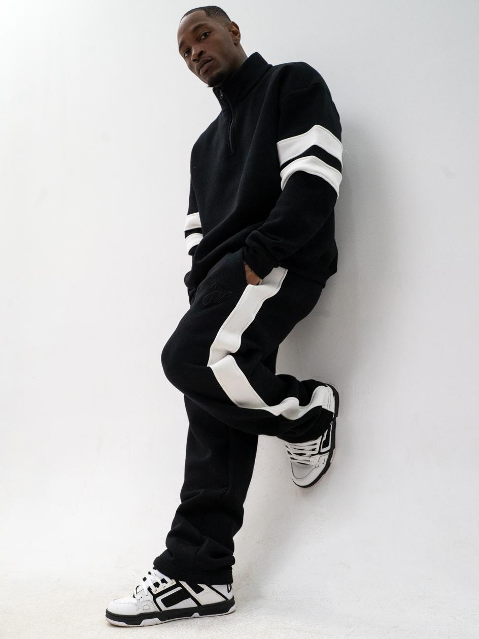 Komplet dresowy w nowoczesnym, streetwearowym stylu – bluza o oversize’owym kroju oraz spodnie typu baggy. Bluza z wysokim kołnierzem, zapinana do połowy, nadaje całości charakteru i świetnie sprawdza się w chłodniejsze dni. Spodnie z luźną nogawką zapewniają maksymalną wygodę i swobodę ruchów.