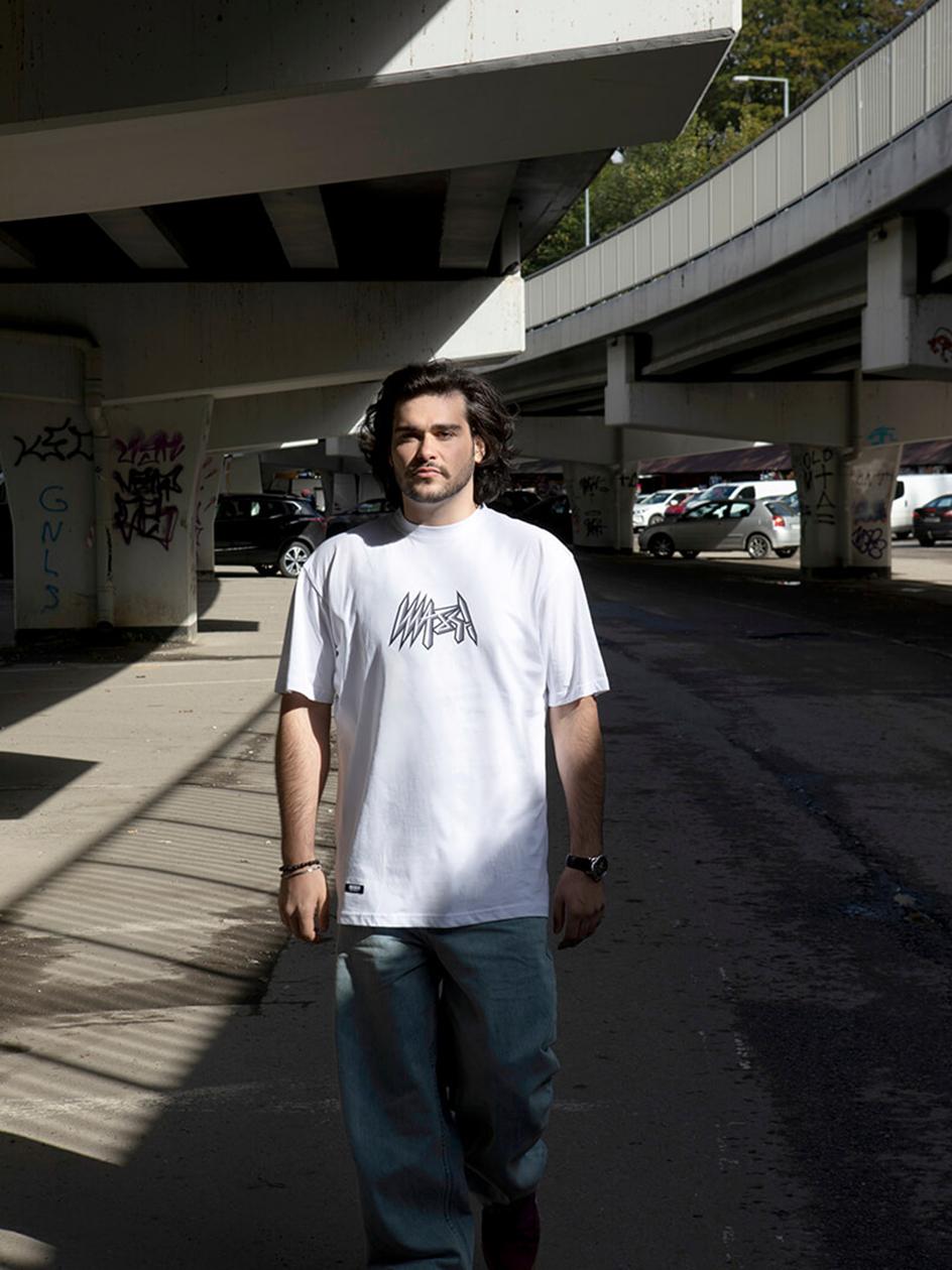 Koszulka o regularnym kroju, utrzymana w streetwearowej estetyce marki Mass. Nadruki na froncie oraz karku nadają całości charakterystycznego wyglądu i podkreślają branding.