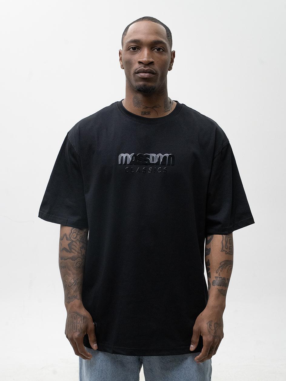 Koszulka o regularnym kroju, utrzymana w streetwearowym stylu marki Mass. Na froncie i na karku znajduje się gumowa, przezroczysta aplikacja, co nadaje całości oryginalnego wyglądu.
