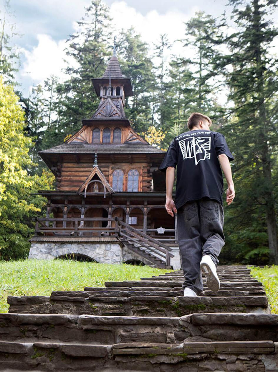 Koszulka o regularnym kroju, utrzymana w streetwearowym stylu marki Mass. Na lewym froncie znajduje się nadruk, natomiast tył zdobi duża, wyrazista grafika, która nadaje całości charakteru.