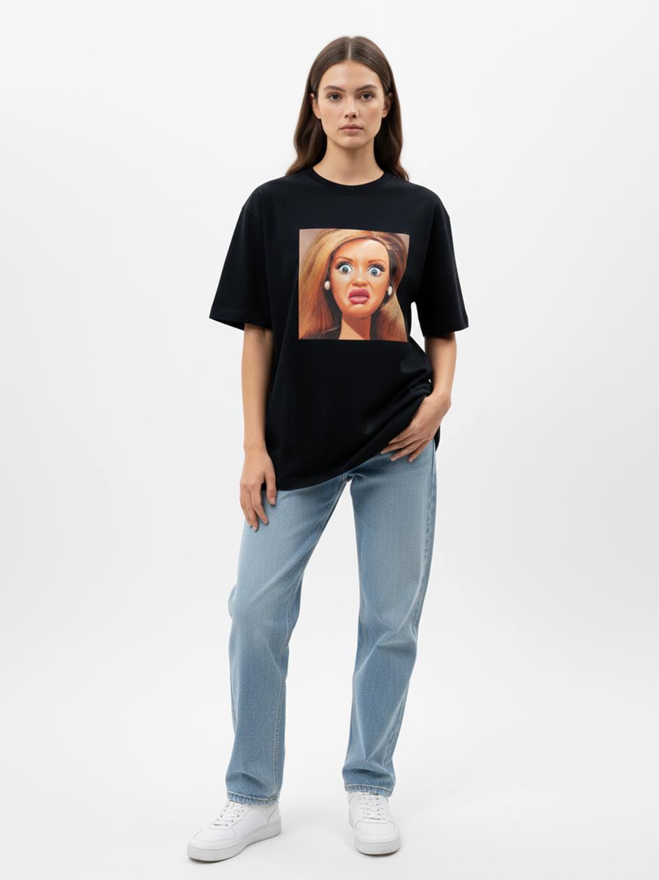 Koszulka Z Krótkim Rękawem Oversize Damska Czarna MyStars Disgusted Barbie
