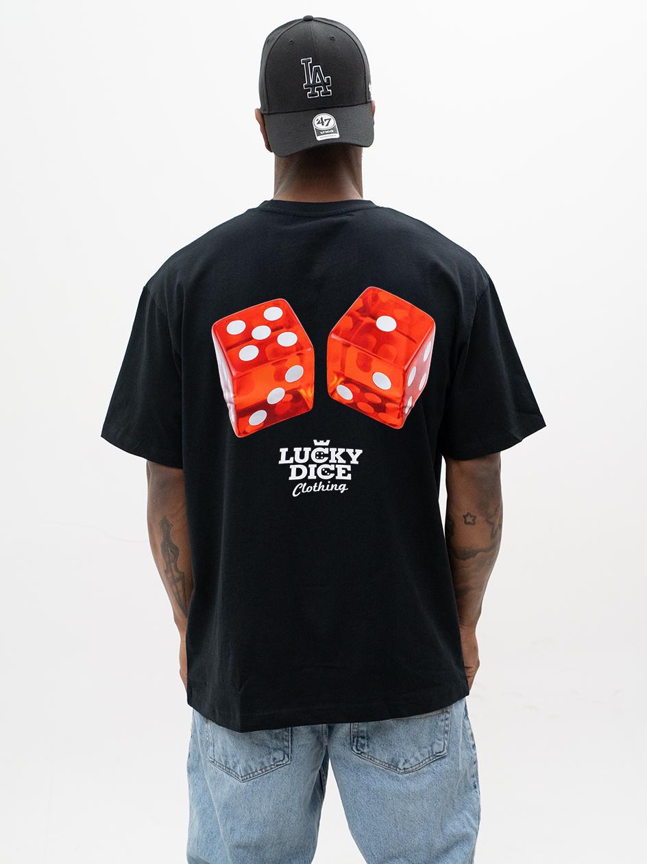 Koszulka Z Krótkim Rękawem Oversize Męska Czarna Lucky Dice Red Dice