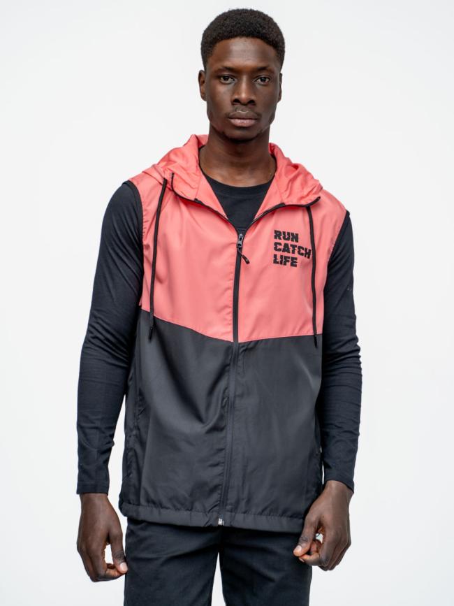Kurtka Bez Rękawów Przejściowa Przeciwdeszczowa Męska Czarna / Jasna Czerwona Catch Run