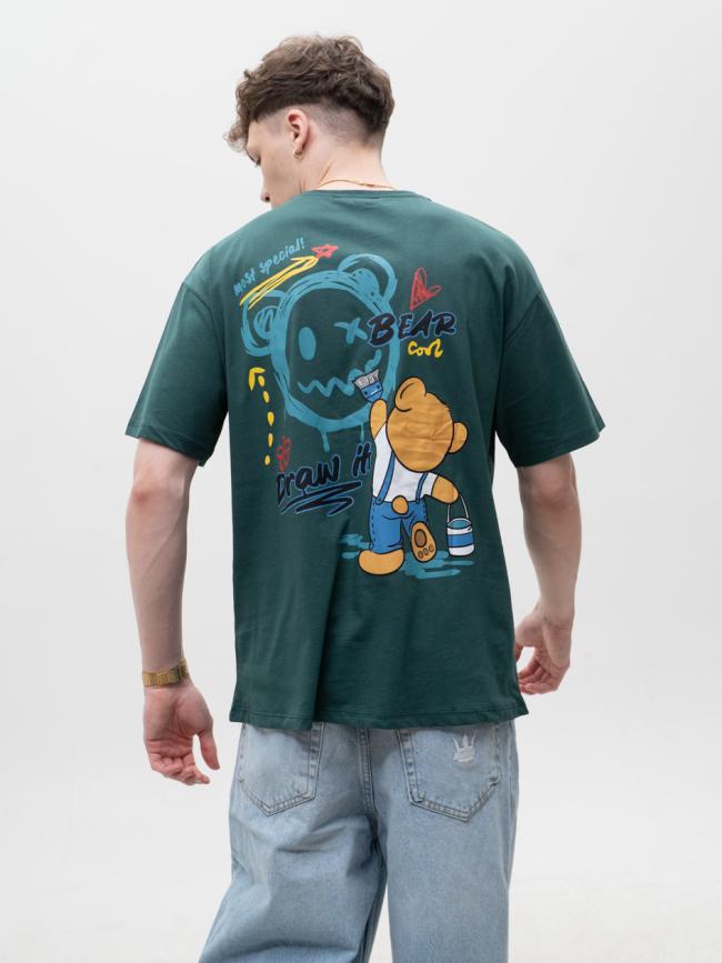 Koszulka Z Krótkim Rękawem Męska Ciemna Zielona MyStars Bear Drown It