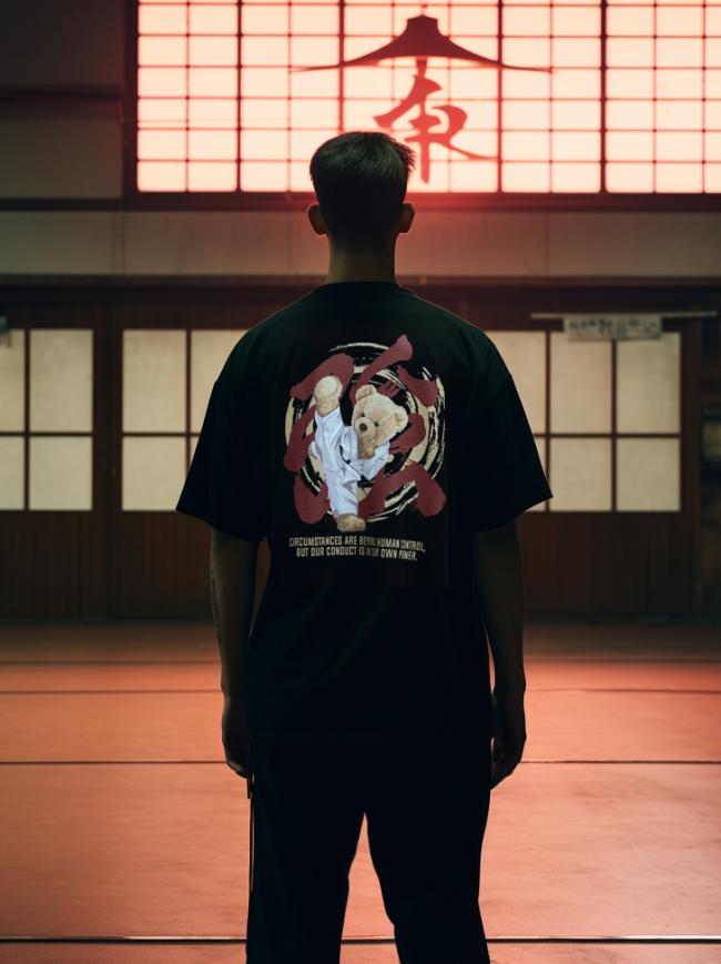 Koszulka Z Krótkim Rękawem Oversize Męska Czarna MyStars Kung Fu Bear