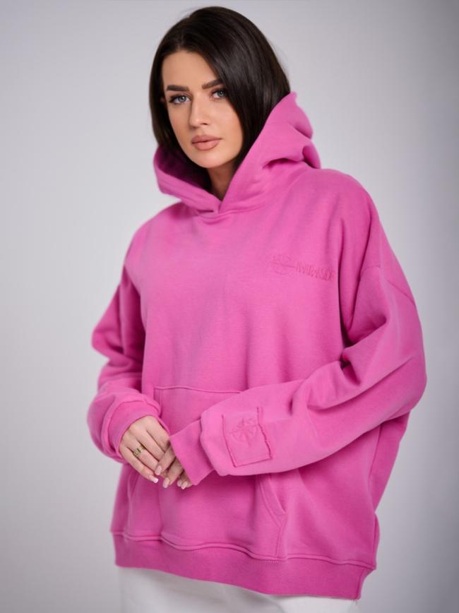 Bluza Z Kapturem Super Oversize Damska Różowa Natural Side Haft Logo