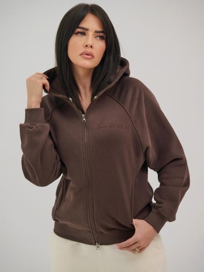 Bluza Z Kapturem Rozpinana Damska Brązowa Natural Side Logo