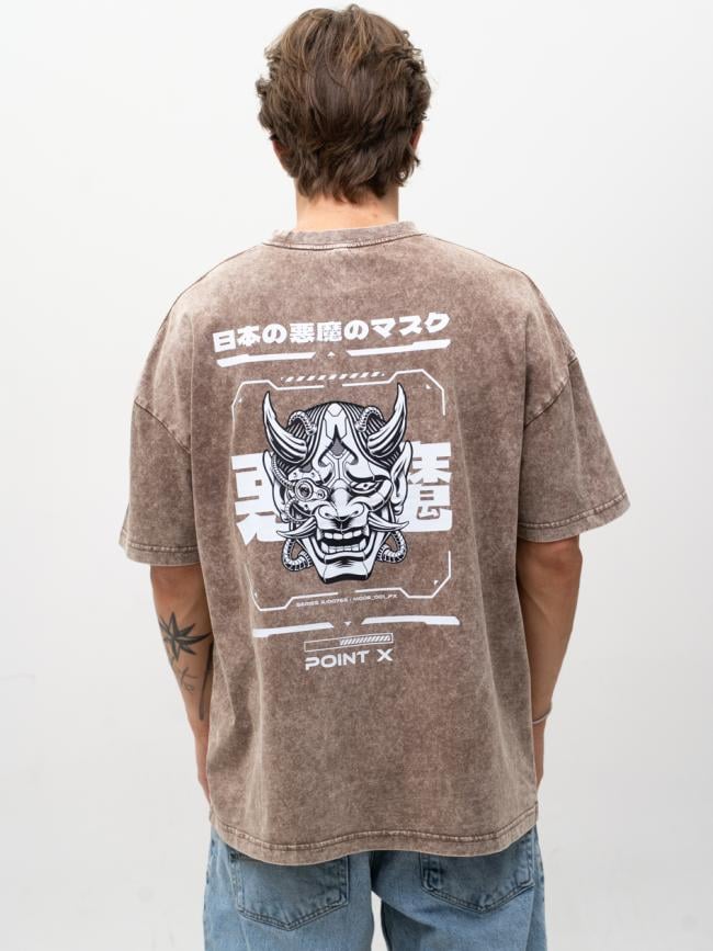 T-Shirt Oversize Męski Brązowy Acid Wash Point X Monster