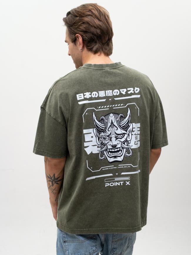 T-Shirt Oversize Męski Oliwkowy Acid Wash Point X Monster