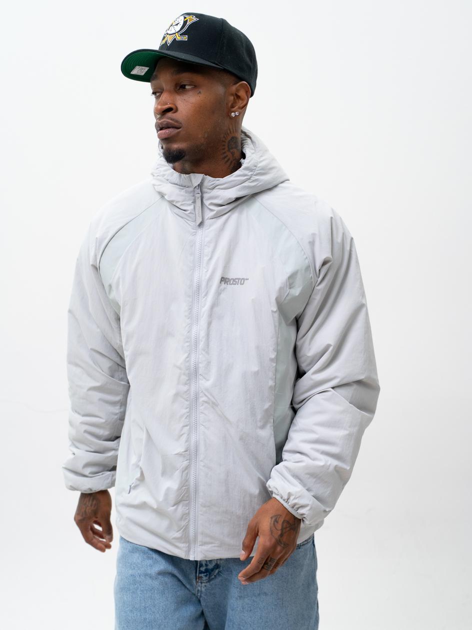 Lekka Kurtka Zimowa Męska Jasna Szara Prosto Contrast