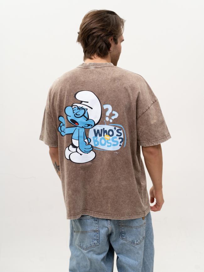 T-Shirt Oversize Męski Brązowy Acid Wash Smerfy Ważniak Boss
