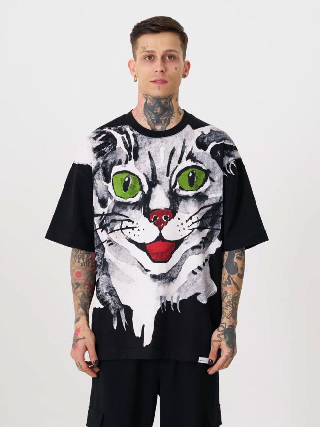 Koszulka Z Krótkim Rękawem Męska Oversize Czarna Machinist Runaway Cat