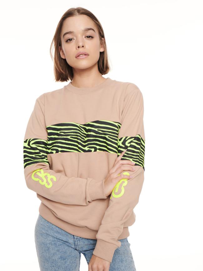 Interesuje Cię klasyczna, czarna bluza damska bez kaptura? A może szukasz produktu w nietypowym kolorze? W obu przypadkach znajdziesz u nas odzież dostosowaną do Twoich oczekiwań! Proponujemy bluzy jednokolorowe oraz wyróżniające się modnym wzornictwem. Możesz skusić się na produkt na przykład w tonacjach zieleni, różu, błękitu, beżu, czerwieni, grafitu czy żółtego. Alternatywą będzie elegancka, biała bluza damska bez kaptura, która świetnie sprawdzi się nawet w galowych outfitach. Jeśli na co dzień wybierasz odzież w niebanalnej odsłonie, koniecznie zwróć uwagę na produkty o oryginalnych deseniach. Przykładem mogą być damskie bluzy z okrągłym dekoltem inspirowane zwierzęcym wzornictwem lub ozdobione geometrycznymi motywami. To doskonały wybór dla kobiet, które poszukują nietypowych dodatków do stylizacji. W najgorętsze trendy świetnie wpisują się także sportowe ubrania z napisami. Możesz zdecydować się na bluzy damskie bez kaptura 4F, Levi’s czy Fila, przyciągające wzrok markowym logo. W ofercie znajdziesz odzież wykończoną szerokimi mankietami na rękawach oraz w dolnej części, która znakomicie dopasowuje się do każdego typu sylwetki. Skorzystaj z usług naszego sklepu i przekonaj się, że markowa bluza damska nie musi być droga. Dołącz do grona usatysfakcjonowanych klientek UrbanCity!