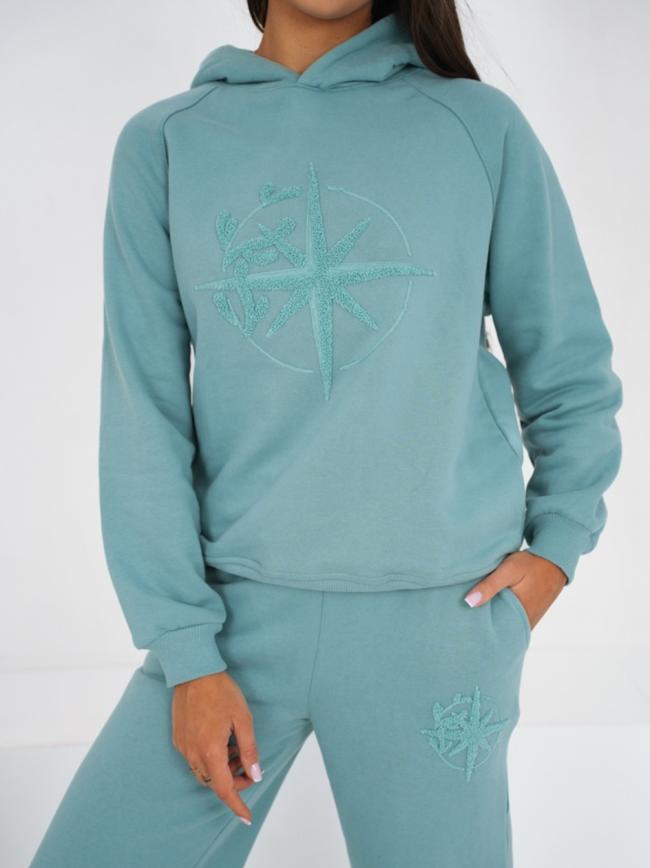 Bluza Z Kapturem Oversize Damska Zielona Natural Side Haft Logo