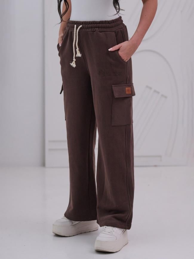 Spodnie Dresowe Damskie Brązowe Natural Side Leather Patch Pocket Cargo