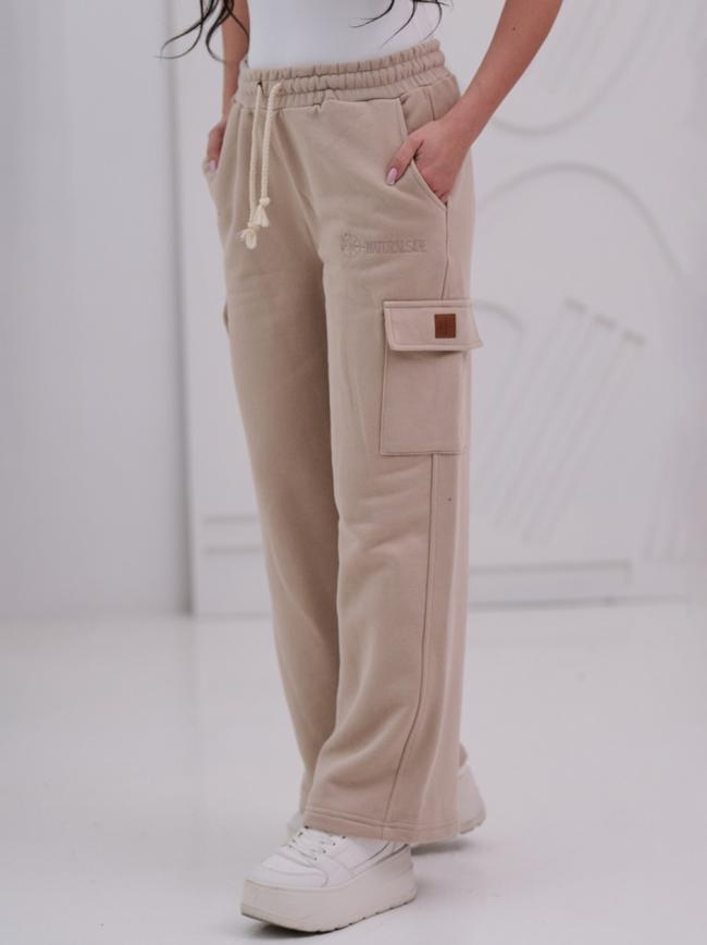 Spodnie Dresowe Damskie Beżowe Natural Side Leather Patch Pocket Cargo