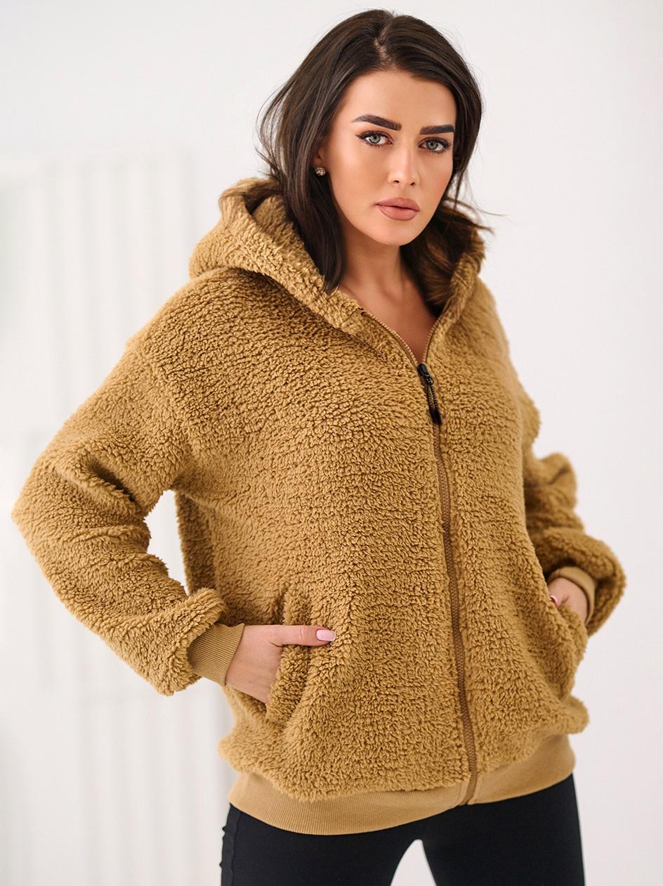 Bluza o luźnym, oversizowym kroju, wykonana w całości z miękkiego materiału typu sherpa. Idealna na chłodne dni – ciepła, puszysta i niezwykle przyjemna w dotyku.