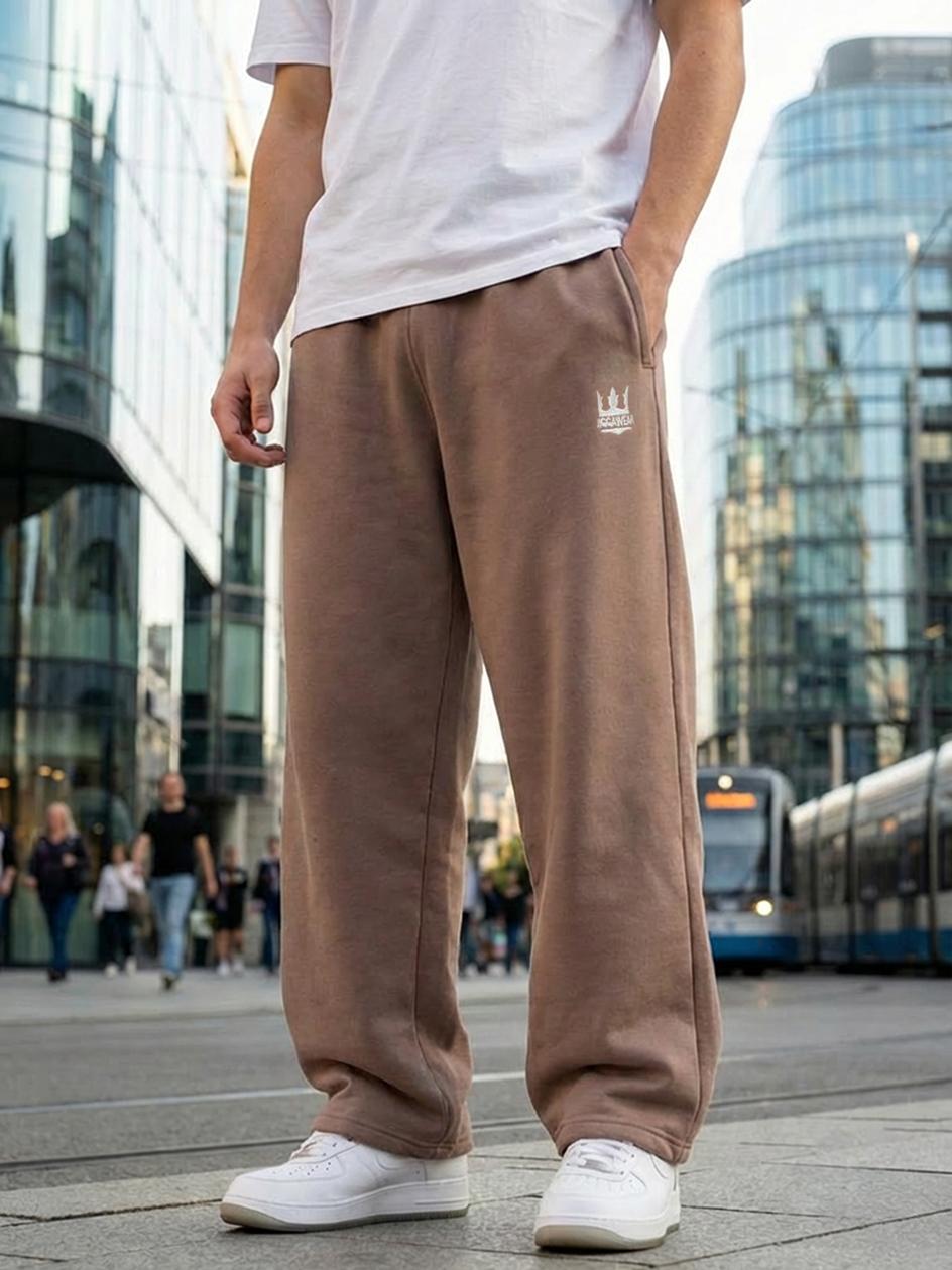 Spodnie dresowe o obszernym kroju z haftowanym logo, posiadają dwie boczne kieszenie.