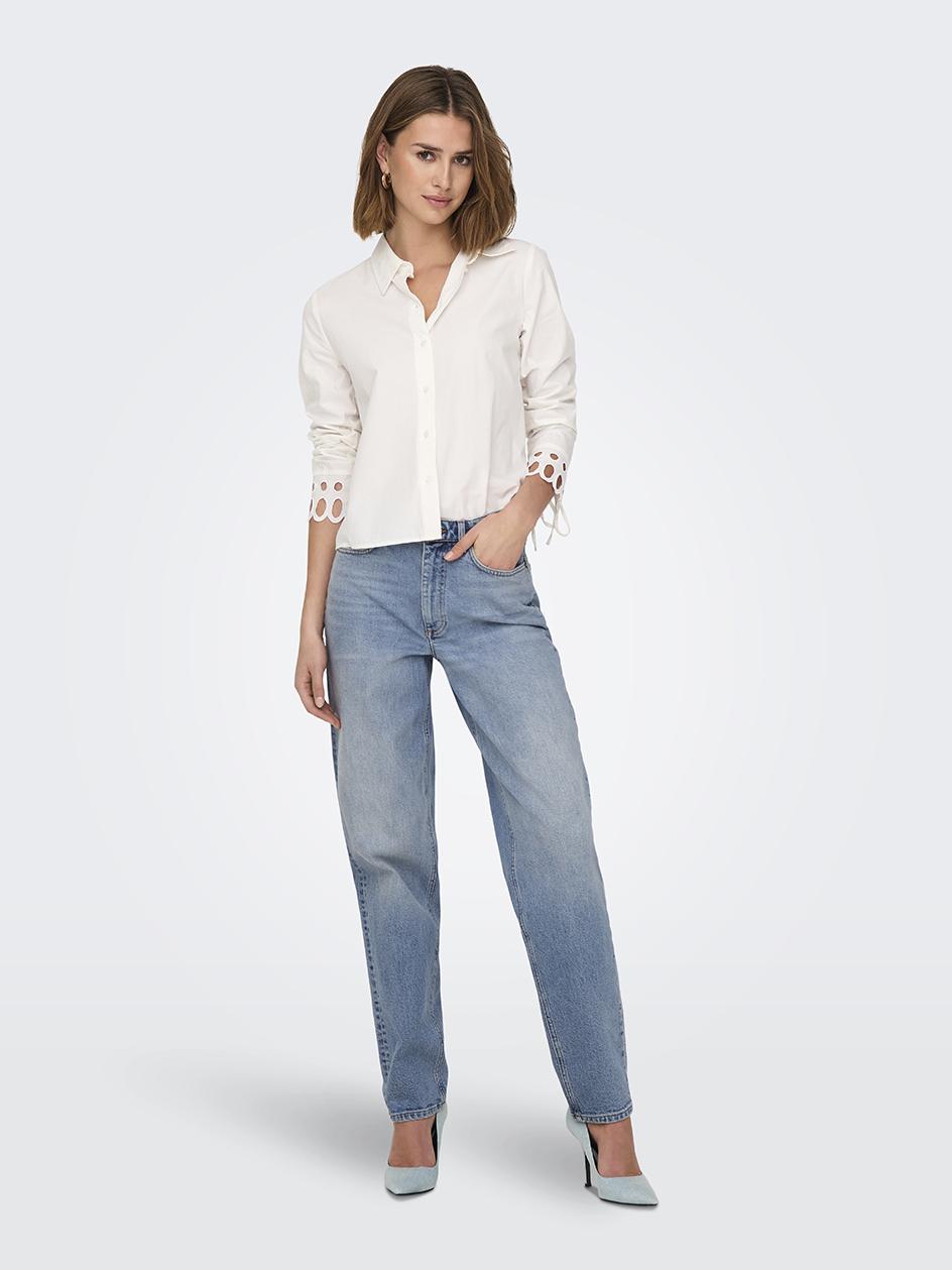 - Fason: Klasyczne mom jeans z wysokim stanem i luźniejszym krojem na całej długości nogawki – zapewniają komfort i swobodę ruchu