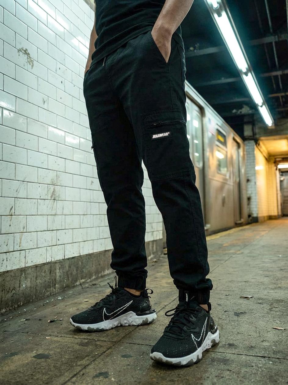 Męskie spodnie materiałowe typu cargo marki Jigga Wear.