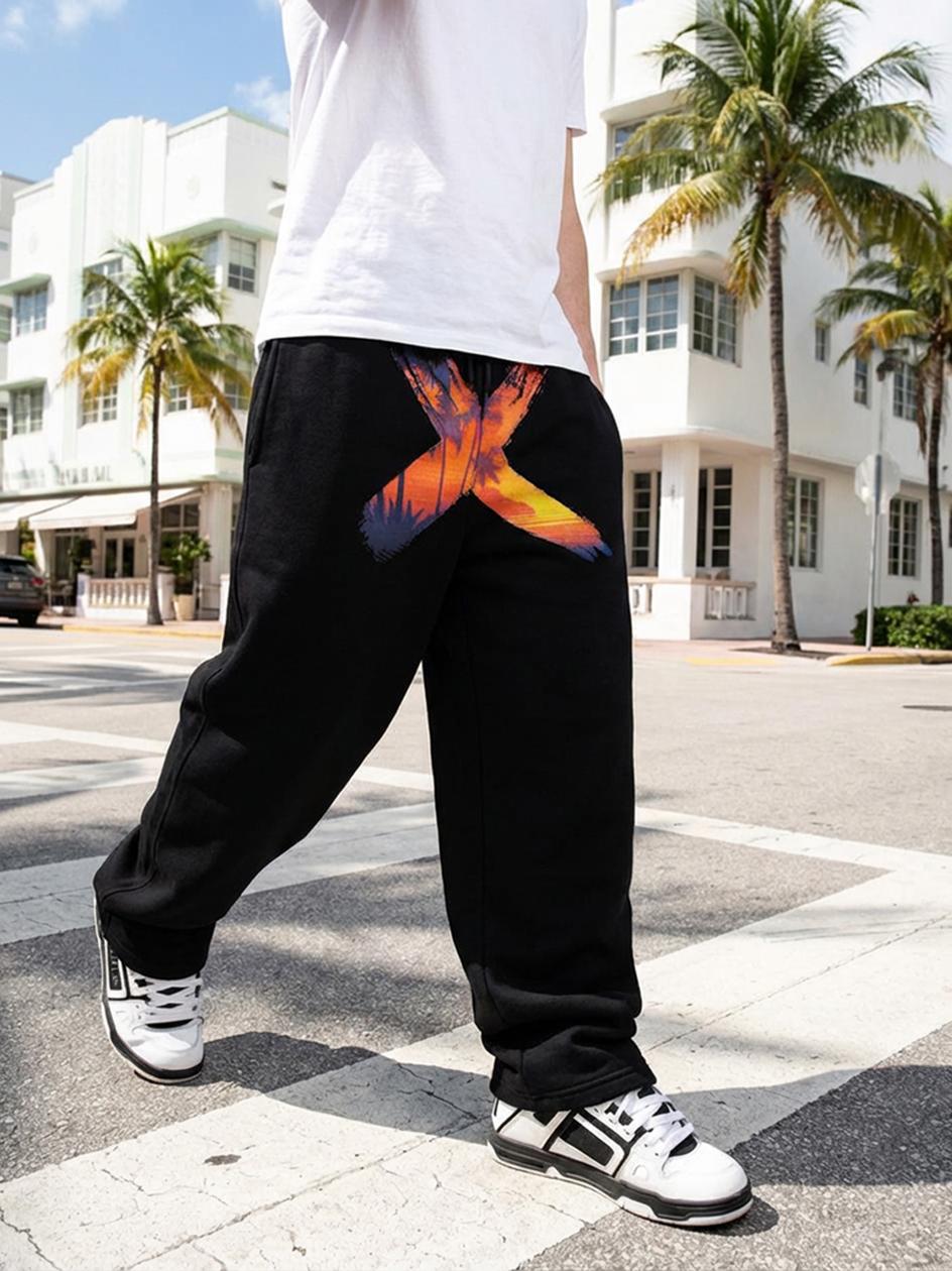 Spodnie dresowe o obszernym, komfortowym kroju, ozdobione stylowym nadrukiem. Model wyposażony w trzy praktyczne kieszenie, elastyczną gumę w pasie z regulacją za pomocą sznurka oraz ściągacze u dołu nogawek, które zapewniają dobre dopasowanie i wygodę noszenia.