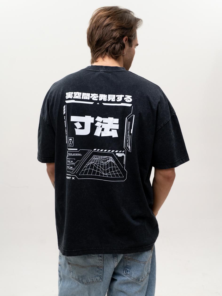 T-Shirt Oversize Męski Czarny Acid Wash Point X Board