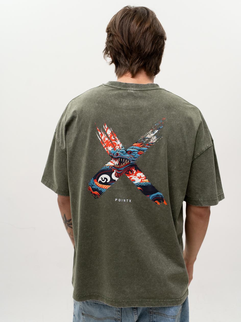 T-Shirt Oversize Męski Oliwkowy Acid Wash Point X Dragon