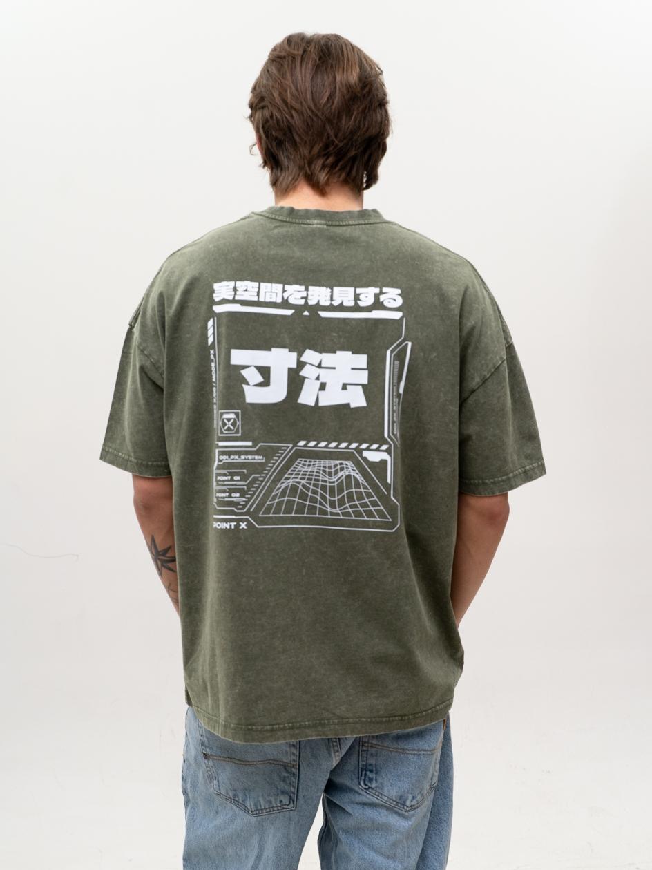 T-Shirt Oversize Męski Zielony Acid Wash Point X Board