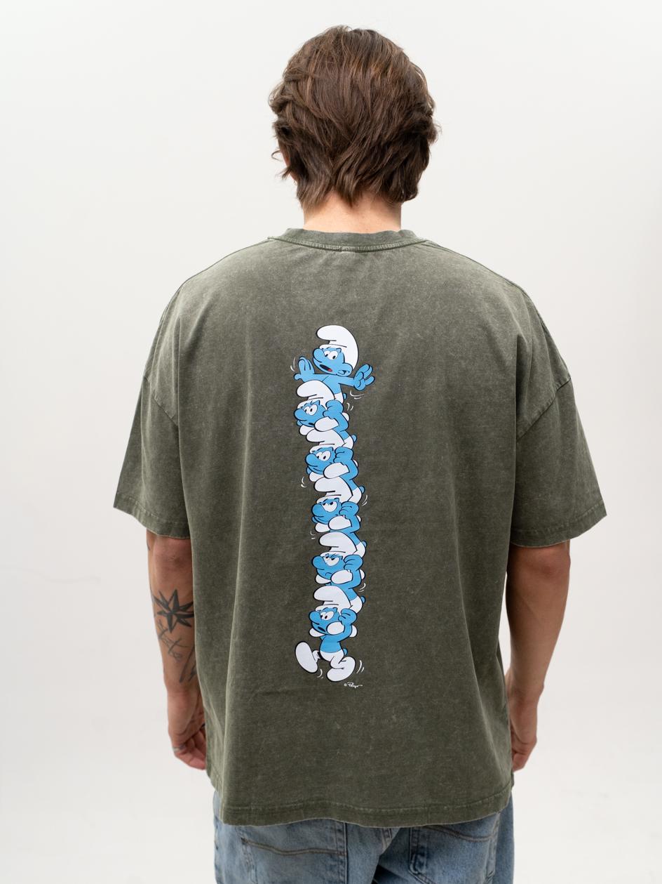 T-Shirt Oversize Męski Zielony Acid Wash Smerfy Pickaback