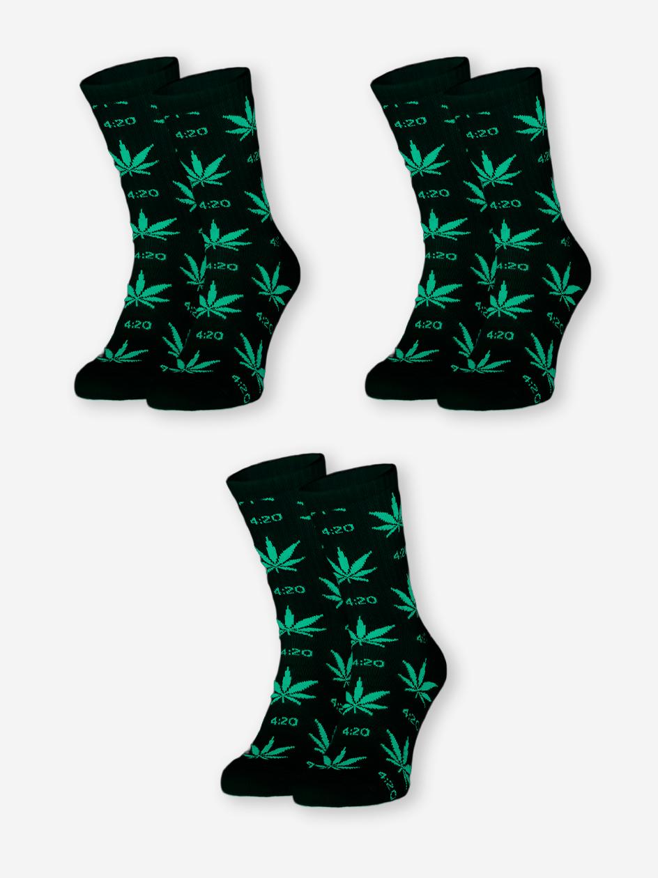 Zestaw 3 Par Skarpet Kush Leaves Czarne / Zielone