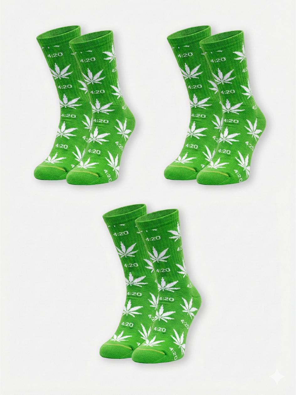 Zestaw 3 Par Skarpet Kush Leaves Zielone/ Bieałe