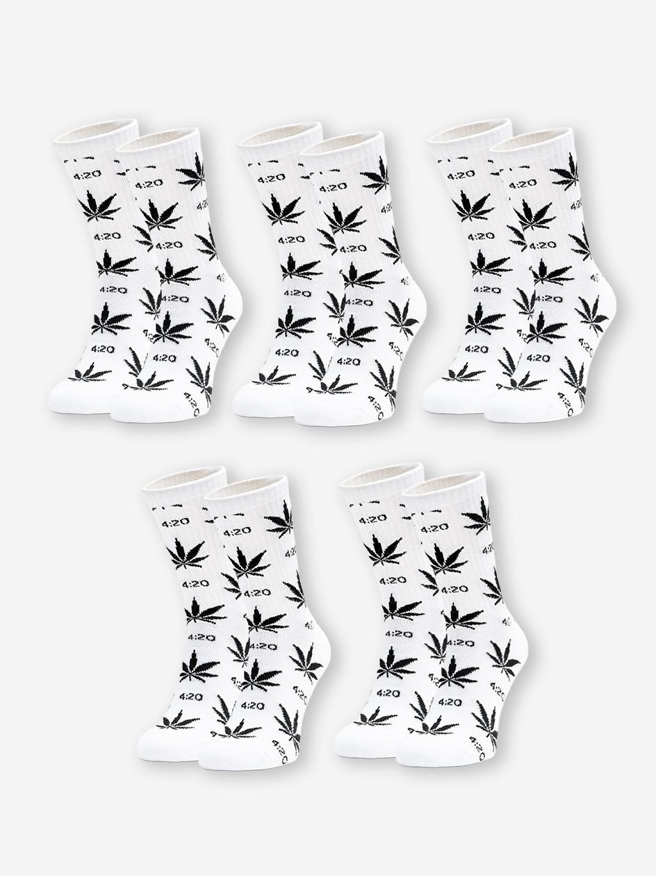 Zestaw 5 Par Skarpet Kush Leaves Białe / Czarne